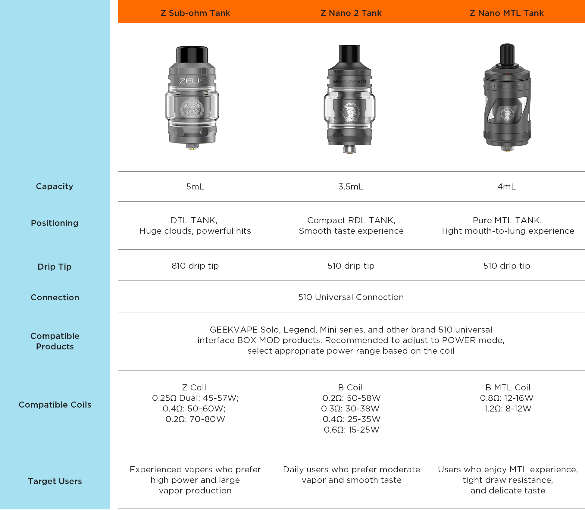 Geekvape Z Series Atomizers—Quick Comparison Check out this simple guide for easy comparison: