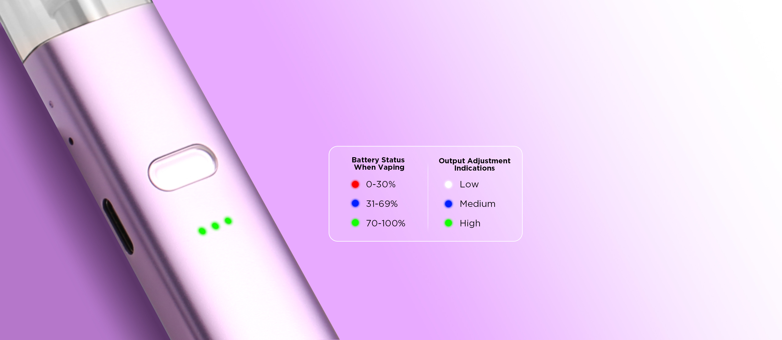 Battery Capacity: 1000mAh Battery Status Instructions: Red Light(0-30%) I Blue Light(31%-69%) I Green Light(70%-100%) Output Adjustment Indications: White - Low Output I Blue - Medium Output I Green- High Output Working Temperature: -10°C ~ 45°C Button Functions: Power on/off I Ignition I Output Adustments Accidental Press Protection: Press 5 times the button to activate this function. |