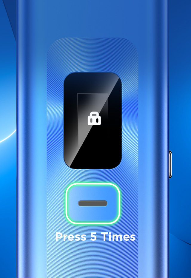 Simply press 5 times to prevent children from being able to access the device. A caring feature to secure our beloved ones while enjoy the vape.