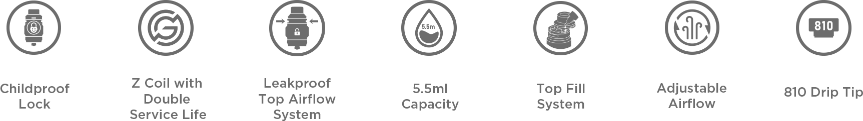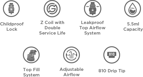 Child Safety Lock Z Coil with Double Service Life Leakproof Top Airflow 5.5ml Capacity Top Fill System Adjustable Airflow 810 Drip Tip |